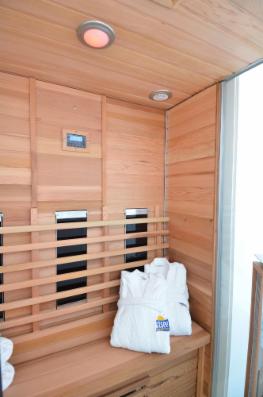 Die Infrarot Sauna sorgt für Wellness im eigenen Appartement und bietet ebenfalls den sensationellen Meerblick.