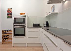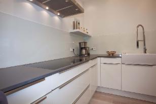 Die im Wohnbereich harmonisch integrierte, großzügige Küchenzeile in U-Form lässt mit ihrer hervorragenden Ausstattung keine Wünsche eines Hobbykochs offen.