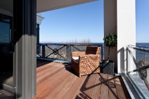 Mit 122 qm erwartet Sie eine luxuriöse Meerblicksuite in der 2.Etage der Villa Claire. Der großzügige lichtdurchflutete Wohnbereich ist mit hochwertigen Möbeln und hochwertiger Technik ausgestattet.