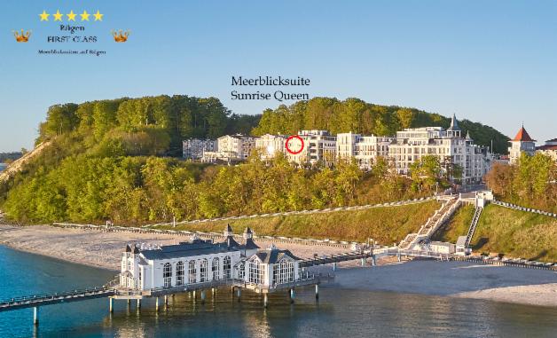 Einen Komforturlaub vom Feinsten mit freiem Meerblick über der berühmten Seebrücke von Sellin, ist in der Villa-Claire möglich, in der Villa-Claire finden Sie die Meerblick Suite Sunrise Queen.