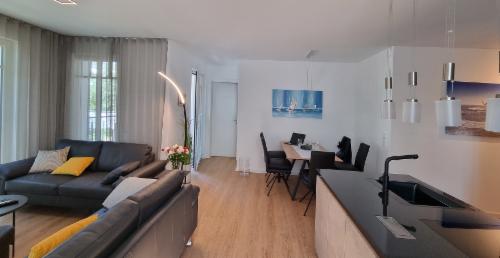 Wohnzimmer ist mit einem TV 55 Zoll ausgestattet und die gesamte